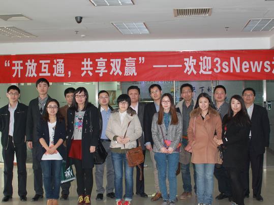 2014年3月17日下午,3sNews的采編團(tuán)隊(duì)在總裁劉玉璋帶隊(duì)下,來到中科宇圖天下科技有限公司參觀學(xué)習(xí),受到了中科宇圖副總裁/中科宇圖資源環(huán)境科學(xué)研究院院長(zhǎng)劉銳等公司領(lǐng)導(dǎo)的熱情接待。