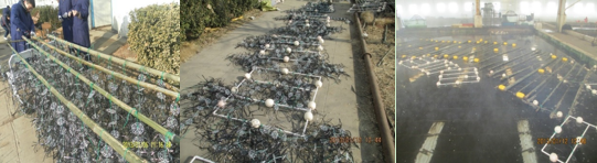 采用竹子浮島和PVC管浮島共用的形式,其中竹子浮島共用20個,PVC管浮島共用25個,共用2200束填料,10個環(huán)每束。
